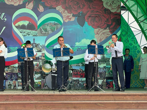 | Великая Отечественная война стала самым суровым испытанием для нашего народа. Вместе с солдатами на фронте и рабочими в тылу в строй встала и песня. Песня помогла выстоять народу и победить, она стала грозным оружием, не позволившим сломить дух советского народа. В самом начале войны советскими композиторами были созданы сотни новых песен, многие из которых сразу «ушли на фронт». В рамках "Дней армейской культуры" в парке им.З.Биишевой состоялось мероприятие "Вальс Победы" с участием народного духового оркестра и народного хора ветеранов Районного Дворца культуры. Коллективы представили популярные ретро произведения на военную и послевоенную тематику: "В землянке", "Катюша", "Три танкиста", "Огонек", "Песня батыров", "Журавли России", "На побывку едет", "Ветераны" и др. Завершился праздничный вечер вальсом "Синий платочек". | |
